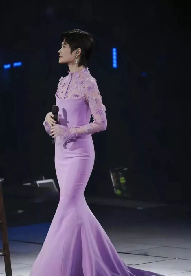 所以,当2026年初,她穿着那条柔和的香芋紫长裙缓步走上红毯时,一切都有了解释。她的步子依然不算小,带着点惯有的利落,裙摆随着步伐轻轻晃动。颜色的娇嫩和面料的柔软是极致的,但裙子的剪裁和她的驾驭方式,却是干脆的、有力量的。 她没有刻意改变走路的姿态,去迎合某种传统的“女人味”想象。