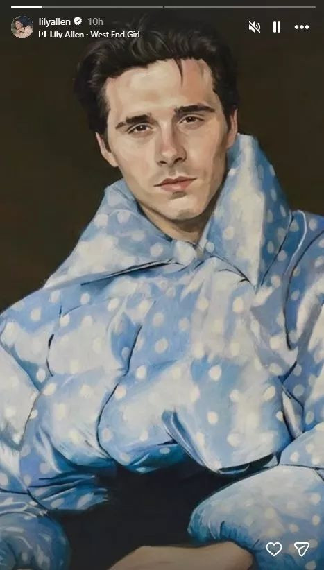 莉莉.艾伦则用她标志性的幽默方式,加入了这场讨论 —— 她晒出自己的专辑《伦敦西区女孩》封面,只不过将封面上自己的脸,换成了布鲁克林的脸。