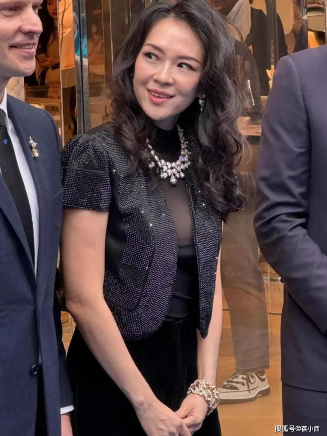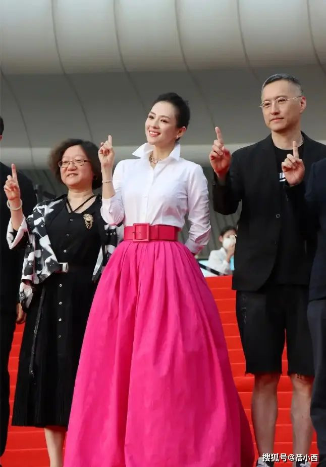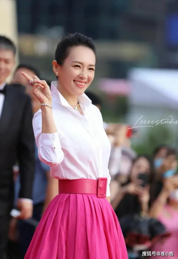 参加活动的章子怡穿着肯定不能随意,她不光烫了卷发,还穿着马甲和修身裙,整个人的气质提升一大截。