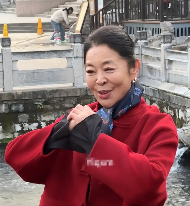 她并没有盛装亮相,而是穿着日常实用的冬季搭配,与工作人员在泉边录制节目。熙来攘往的人群中,有人认出了这位曾经春晚舞台上的“国民主持”,用手机记录了她的状态。