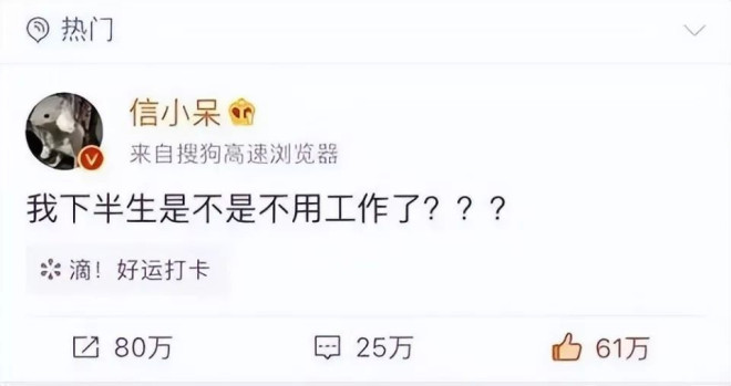 信小呆自嘲,“我没有成为锦鲤,而是活成一个笑话。”