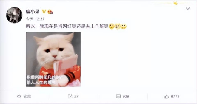 接连的打击下来,信小呆自己也很迷茫:“该找工作,还是做网红?”