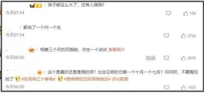 许是葛晓倩的回应太有底气,该澄清博主直接把葛晓倩的评论删除了,但是评论区还是质疑声一片,根本删不过来,大部分网友表示网传“一个代孕,一个自己生”,“出生证明一个七月一个十月”,让张雨绮快点出来澄清。
