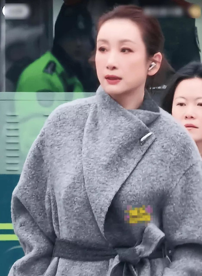 那天她穿着灰色毛呢大衣搭配黑色长裤,外套宽松,裤装利落,配短靴走起路来干脆利落。整体造型简单耐看,但比起穿搭,更让人注意到的是她完全素颜的脸。