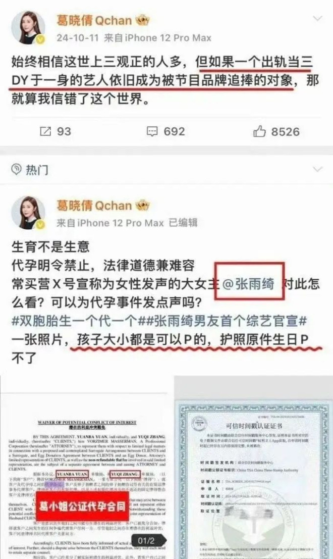 这也是为什么葛女士一直让张雨绮晒两个孩子的出生证、而张雨绮和团队始终不正面应对的原因之一。
