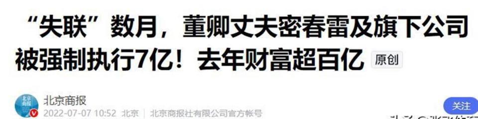 密春雷出身崇明农民家庭,靠土石方工程起家,2003年创立览海集团,身家一度突破百亿。 但当时密春雷尚有配偶,董卿一度被指“插足”。