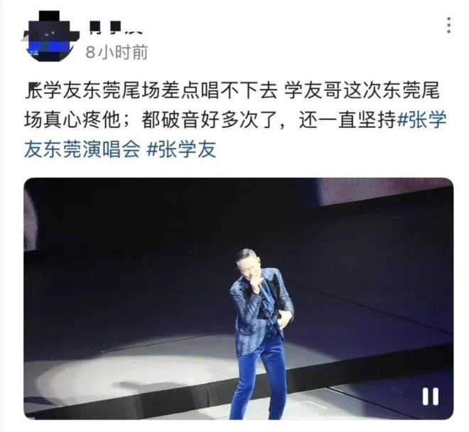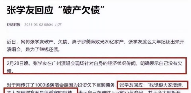 为了佐证“破产”,营销号开始移花接木:电影《赤道》里张学友的剧照被调暗色调,配上“歌神深夜买醉还债”的文案;他因耳水不平衡在舞台上摔倒的瞬间,被解读为“被债务压垮”;连2023年出售一套豪宅的正常资产配置,也被曲解成“填坑救命”。