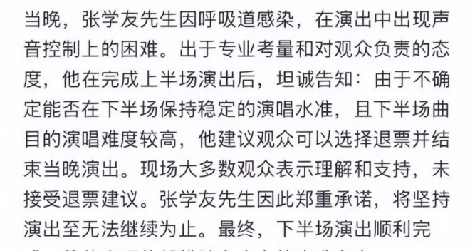 东莞站演唱会那晚,张学友感冒发烧,唱到高音时屡屡破音。 他主动提出:“不如我退票啦? ”台下观众却齐声喊:“继续唱!”他鞠躬道歉,用沙哑的嗓子完成全场,事后只轻描淡写:“耳水不平衡,老毛病咯。”
