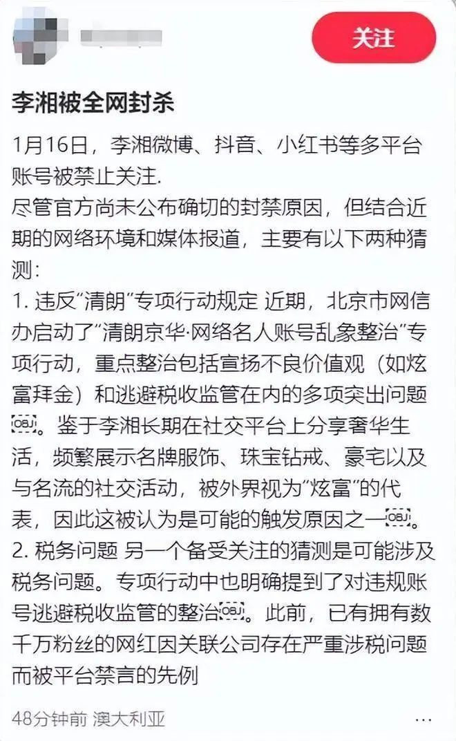 而仅仅半个月后,李湘的账号也忽然被封,也有人认为此事与她的炫富相关。