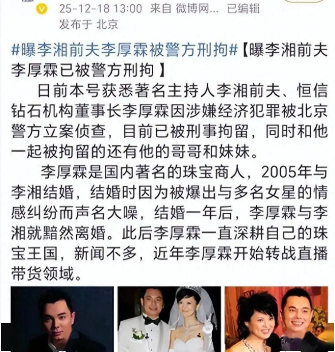 而最辉煌的阶段,李湘却忽然官宣婚讯,嫁给了才认识33天的“钻石王老五”李厚霖。