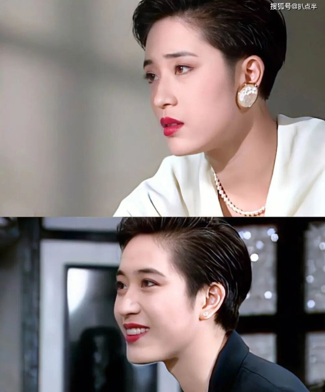 和同期港女走的路线截然不同,早年的她以一头利落的短发出圈,搭配精致妆容和穿搭,给人以飒爽帅气、独立自信的既视感。