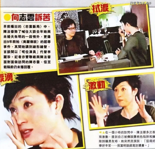 2003年,受尽情伤的陈法蓉辗转到内地发展,又因拍摄《水月洞天》爱上了比自己小7岁的杨俊毅。