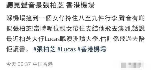 网友说,看到张柏芝一个人拿着八九件行李,还背着一个吉他飞澳洲。想到他的大儿子Lucas刚去澳洲读书,觉得她是去陪读的。