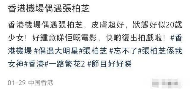 今天(2月2日)凌晨,有网友分享了在香港机场偶遇张柏芝的动态。