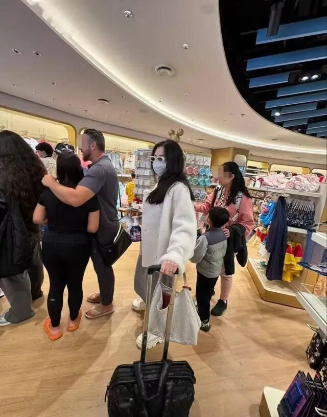 同月29日,又有网友在香港机场碰到她,夸她皮肤好,状态像20岁少女。网友还分享了照片。照片里,她长发披肩,看起来又黑又柔顺,戴了眼镜和口罩,一身打扮朴素,身穿白色毛毛外套,下搭黑色打底裤,脚穿白色厚底鞋,手上挂着一个袋子,还推着一个行李箱。