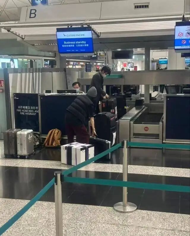 她在有条不紊地处理登机事宜,目之所及看到了吉他、多个行李箱、背包等东西。由此推测,她这次去有可能会留在当地过春节了,毕竟三个儿子都在。
