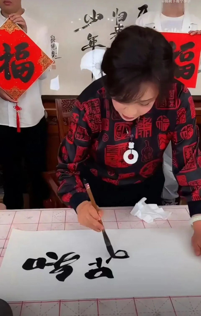 最近刷直播,不少人都刷到了刘晓庆的直播间。75岁的她,穿着素雅的中式上衣,铺好宣纸、蘸足墨汁,一笔一划写着“福”字,架势十足。
