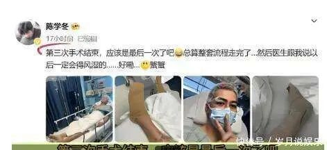 最近,网友们曝光了陈学冬的近况,照片中,他穿着病号服,躺在病床上,正被推往手术室,而他配文写道:希望能是最后一次手术了。这样简单的一句话,透着无奈与渴望。