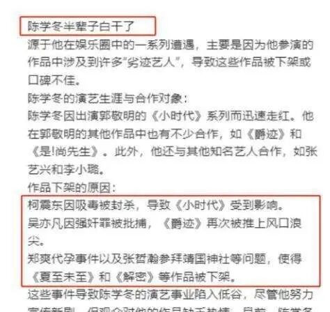 也许有人会说,演员们饰演罪犯的角色多了去了,这不过是巧合罢了。然而,陈学冬的遭遇,确实让人感到特别悲伤。