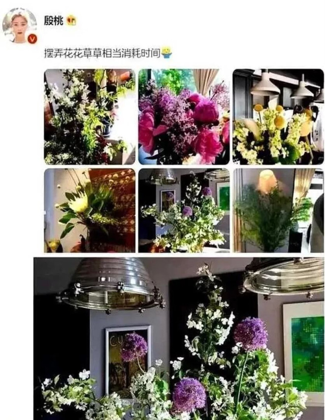 房子内部与“金碧辉煌”绝缘。 客厅墙上挂着的不是名画,而是殷桃逛画展时买的几百块青年画家作品,选择标准只是颜色舒服。 宋瓷花器里插着当季从院子剪的枝条,枯了也不扔,倒过来插瓶变成干枝艺术品。