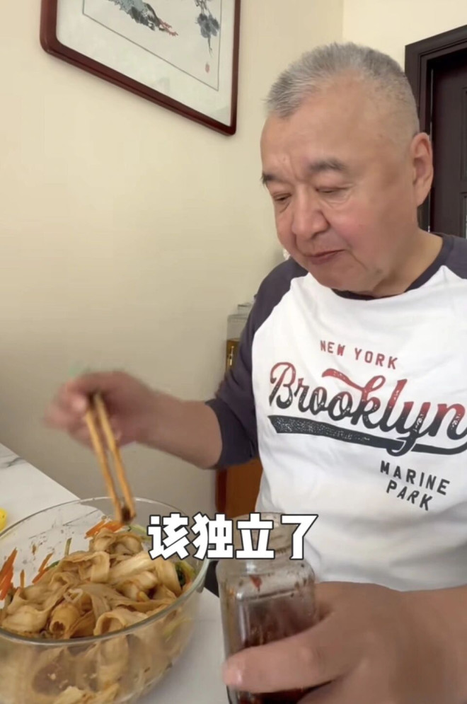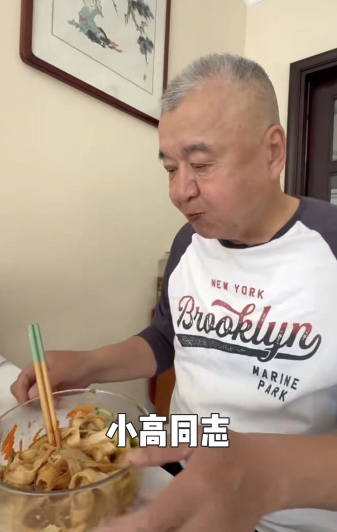 可能是因为味道有些清淡,高父吃面的时候又加了一勺辣酱。老爷子应该七八十岁了吧,看着精神头很好,浓眉大眼的年轻时候一定很帅气。