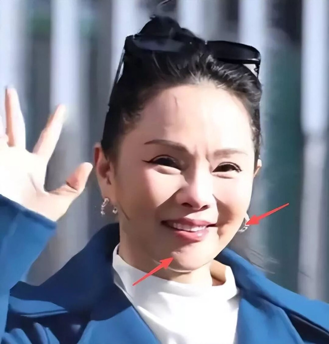 面对着媒体们的镜头,伊能静积极营业,配合着露出笑脸,做出比心等动作。可是,当镜头拉近,伊能静脸上更多的突兀之处也被曝光了。