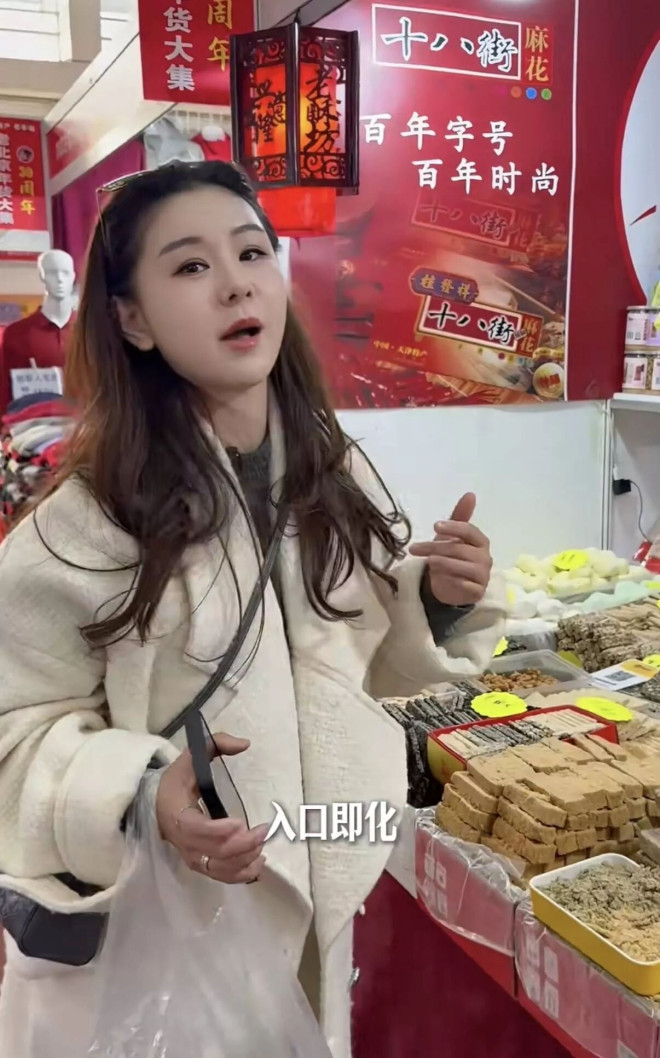 李小萌还买了天津小麻花,她说小的时候麻花还没有这么多口味,现在的小麻花口味也是越来越多了。