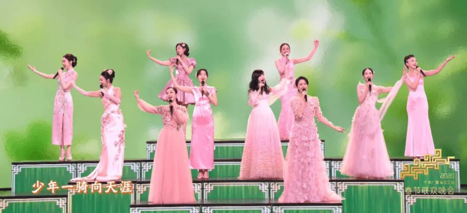 《立春》节目集齐了周慧敏等女歌手,都身着粉色礼服裙演唱,有的穿旗袍,有的穿洋装,仿佛“浪姐成团夜”。