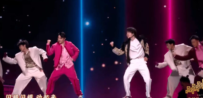易烊千玺和陈小春、言承旭合作表演,唱跳功底自然没话说。就是这个造型穿搭,垫肩是不是有点儿太明显了?尤其是抬起胳膊之后,垫肩直接悬空,好像肩膀上放了两个卷筒一样,显得头大了很多。