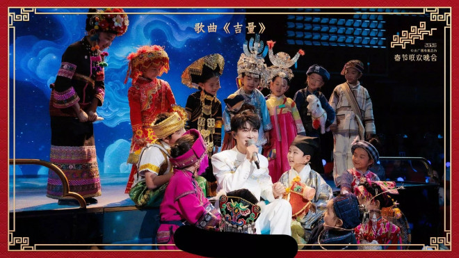 而排在歌舞类节目收视率第二名的,是由周深带着贵州孩子们表演的《吉量》。