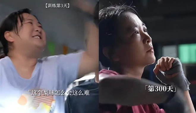 更剧烈的变化发生在她的身体上。 为了电影《热辣滚烫》,贾玲先增重了40斤,让体重达到210斤。 然后用整整一年时间,减掉了100斤。 这个过程没有捷径,就是靠极端自律。 她跑坏过三台跑步机,打烂了五副拳击手套。 最饿的时候,靠嚼剧本上的文字来转移注意力。 2024年电影上映前,所有人都被她的蜕变震撼了。