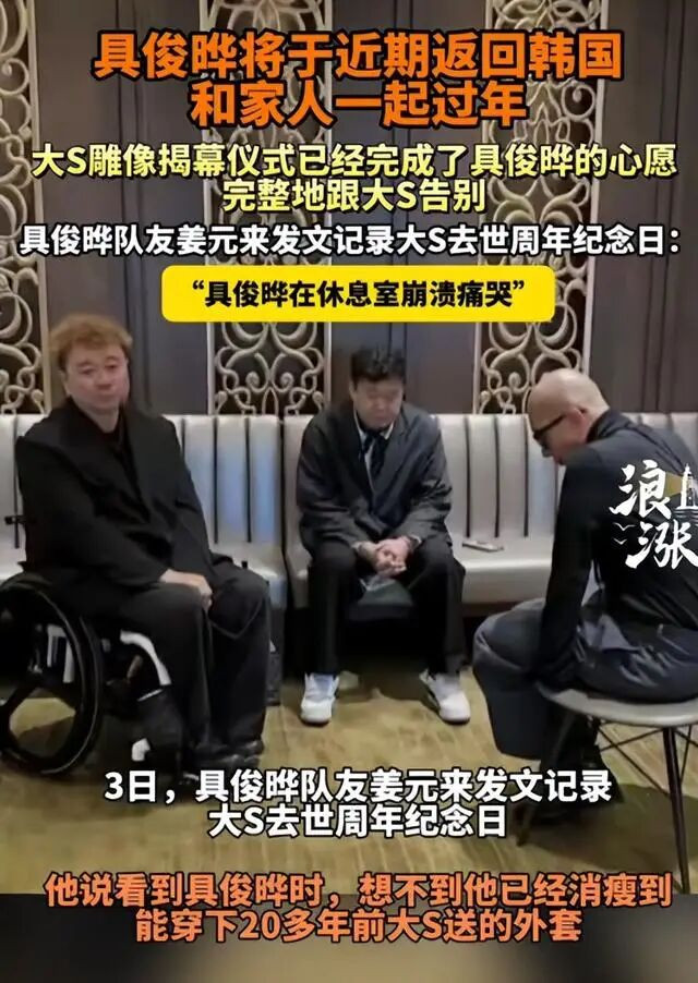 仪式结束后,具俊晔的队友姜元来发动态纪念,说见到具俊晔时根本不敢认,以前身材挺拔的他,瘦到能穿上20多年前大S送的外套。