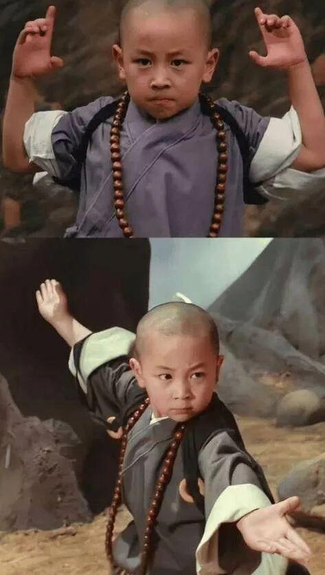他在片中表演的少林通臂拳、醉拳和棍法干净利落,让无数观众记住了这个圆脸光头的功夫小子。