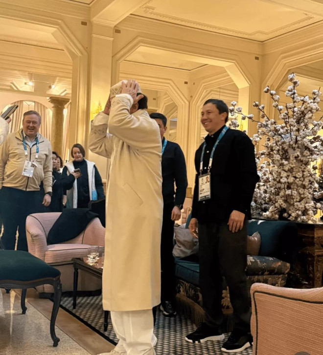 离开场馆后,他还与拳击运动员戈洛夫金见面,尝试穿上当地的特色服饰,完全看不出已是七十多岁的年纪,精神状态依旧充满活力。