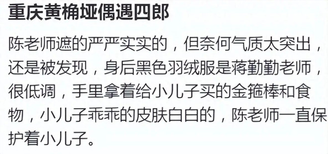 话说回来,去年春节同样陪妻子回重庆的陈建斌,一年过去,他的变化好大,蓄起胡子的陈建斌,灰白相间的胡须让他看起来似老了十岁,现在的陈建斌看着比55岁的实际年龄还要显老像是60的。路人镜头下,他与蒋勤勤母子站一起像祖孙三代。