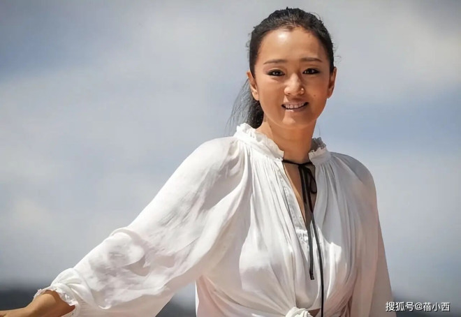 在户外,巩俐换上了一身渐变白色薄纱连衣裙,展现了截然不同的一面。这件连衣裙以纯净的白色为基底,结合宽松的灯笼袖和高领设计,充满了波西米亚的慵懒气息,而腰间的扭结设计,则巧妙地收拢了腰线,避免了宽松版型带来的拖沓感。最妙的是她脚上那双凉鞋,没有选择精致的细跟款,而是坡跟的款式,更舒适大方,搭配这条飘逸的白裙,瞬间消解了整个人的距离感,让她看起来像个小姑娘似的。
