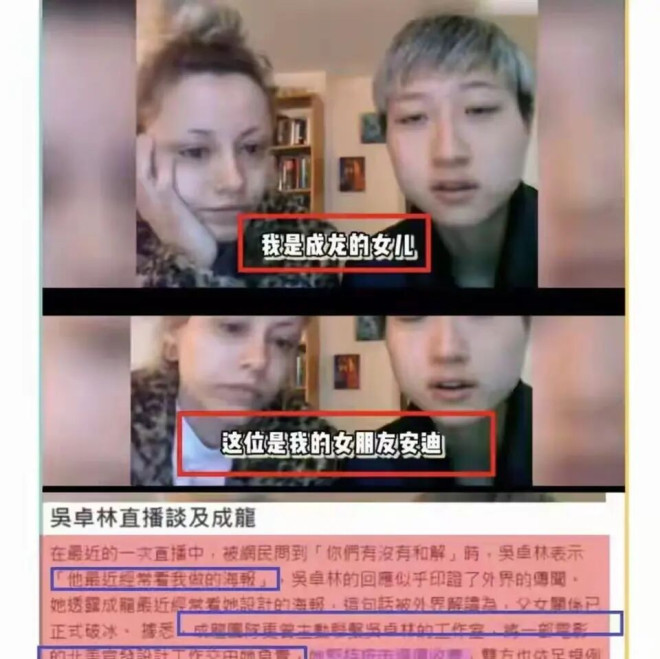 就在成龙努力修复和儿子关系的同时,另一段更为复杂、冰冻了更久的亲情,也开始悄然融化。 那就是他和女儿吴卓林之间,长达二十六年的僵局。 吴卓林是成龙和吴绮莉的女儿,1999年出生,从落地起就被贴上“私生女”的标签。 她的成长充满坎坷,被同学孤立,青春期与母亲关系紧张,甚至曾报警处理家庭纠纷。