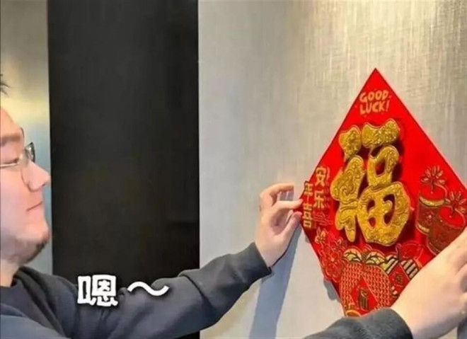 宋丹丹一把将福字按在墙上,动作干脆利落。