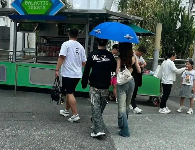 照片中,黄晓明与该美女互动亲密,还尽显绅士风采拿着伞。两人还疑似穿了情侣装,都是黑色上衣、牛仔裤、白鞋的搭配,只是款式不太一样,黄晓明是卫衣搭牛仔阔腿裤,再搭配上黑色帽子和墨镜,让48岁的他看起来年轻不少。美女是挂脖露脐背心搭牛仔阔腿裤,秀了一把火辣身材,面貌远看还是有些网红脸。