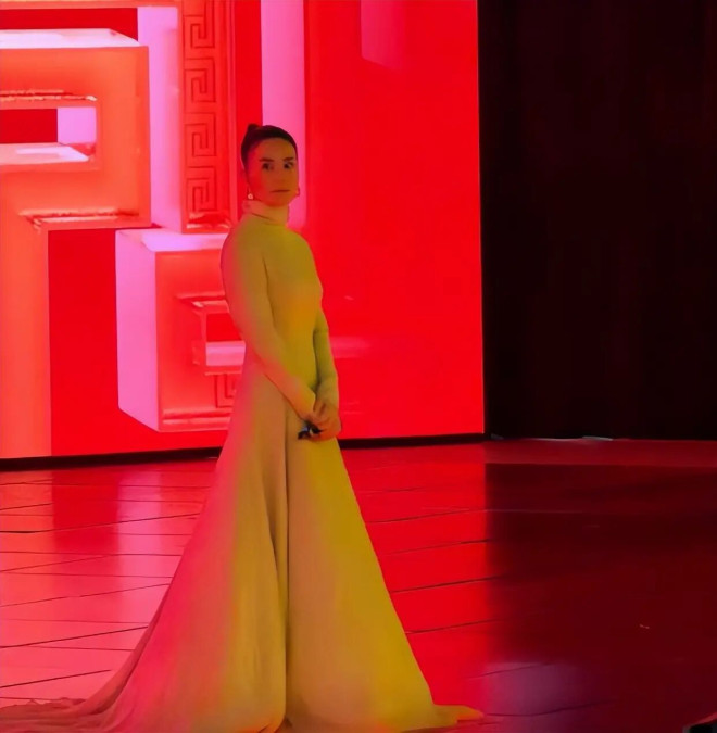 画面中,王菲独自静立,神情淡然。上台前两位助理在她身后小心翼翼地为其整理和提托着长裙裙摆,行色匆匆,仿佛在进行一场庄重的仪式。后台那种争分夺秒、人声鼎沸的备战状态,与王菲清冷疏离,独自静立舞台候场格格不入,以至于被网友形容为“喧嚣中的定海神针”。
