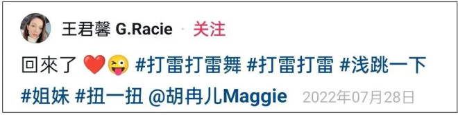 胡冉儿曾参加过舞蹈节目《了不起的舞社》,尴尬的是节目组艾特的用户已失效,点击用户名加载不出任何有效信息,这种情况一般是注销了。