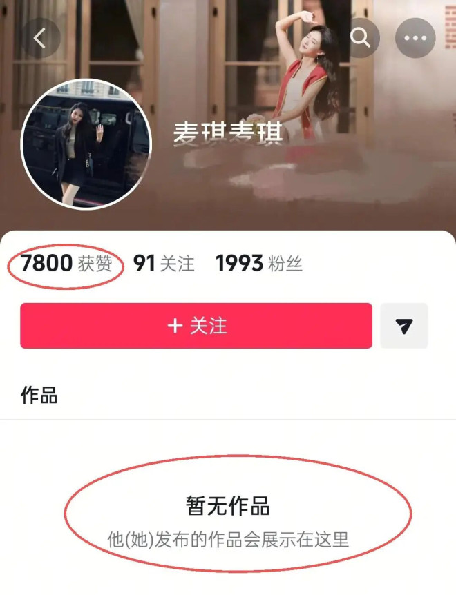 顺着王君馨的艾特,胡冉儿的短视频账号也得以曝光,结果跟其他平台一样主页无任何内容,但是收获了7800个赞,一看也是提前清空了。