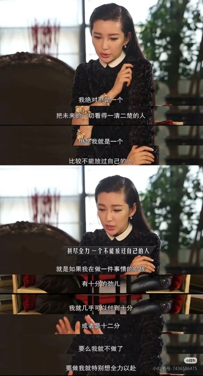 李冰冰说,自己不是一个能把未来看得一清二楚的人,但是一个不能放过自己的人。