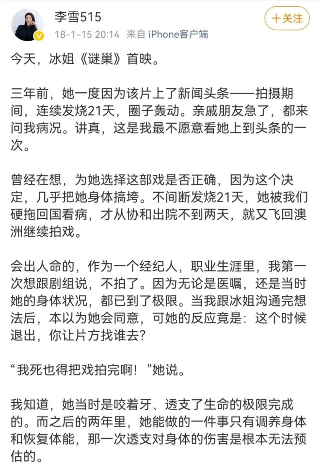 李雪给李冰冰,做出了非常明智的抉择。