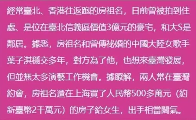不仅在台北有爱巢,还在上海给女方买了一套房。
