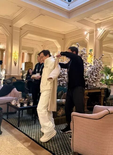 近日,有网友在米兰的一个酒店偶遇了房祖名和成龙。