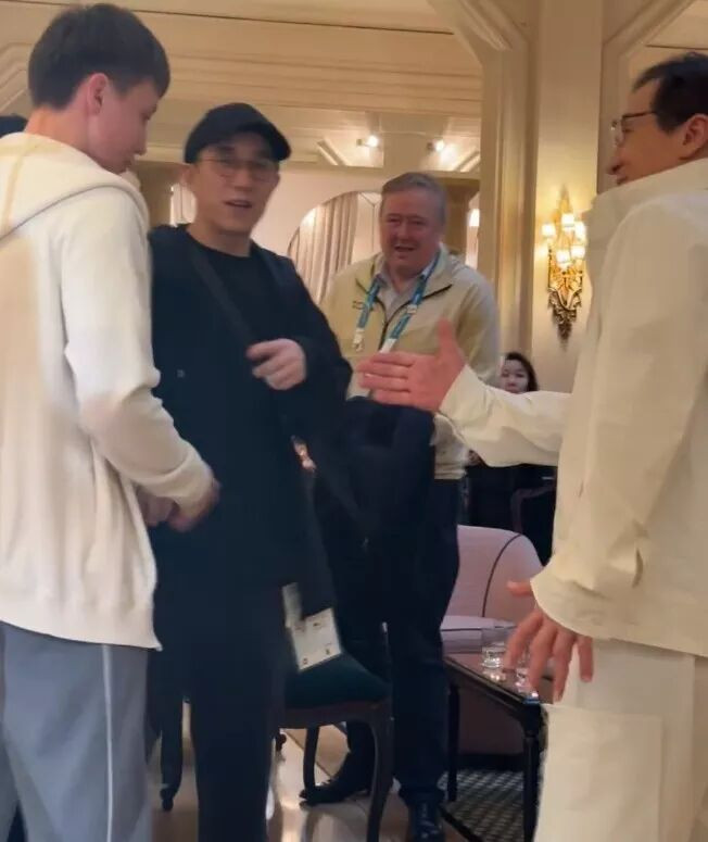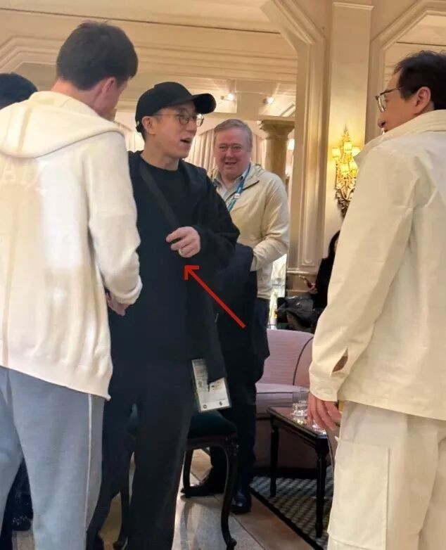 房祖名与外国人握手瞬间,无名指上的婚戒也暴露在镜头前。