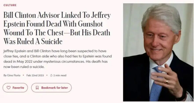 克林顿把爱泼斯坦夸没毛了: