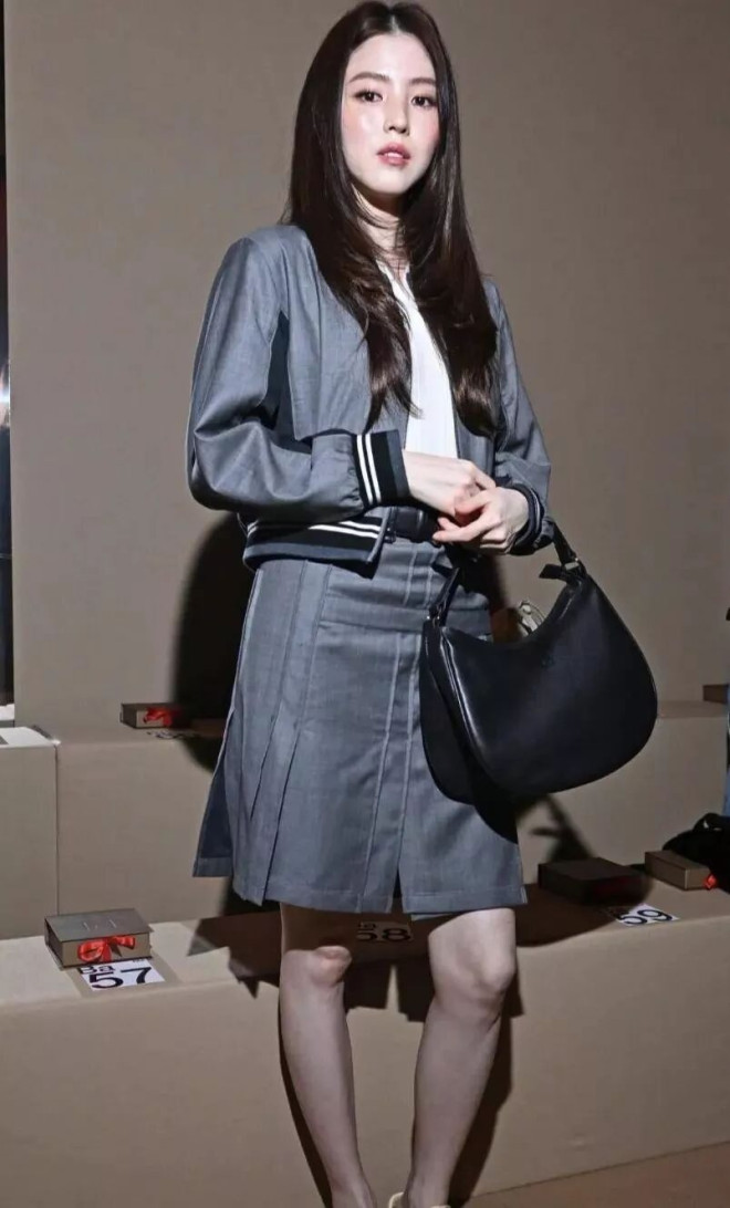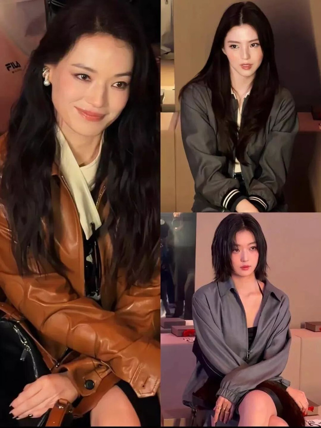 韩国女星韩素希在看秀时同样穿着运动风的外套和短裙,她的长发随意披散着。同样是长发披肩,韩素希的直发造型远远不及舒淇的长卷发舒展优雅,再配合上她本就小巧的五官,给人的感觉就不够大方,甚至有些畏缩。