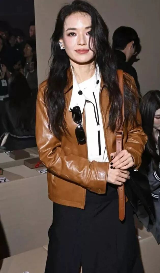 从网上曝光的生图中可以看到,女星舒淇身穿焦糖色皮外套内搭白色运动风衬衫,下身搭配着黑色短裙。